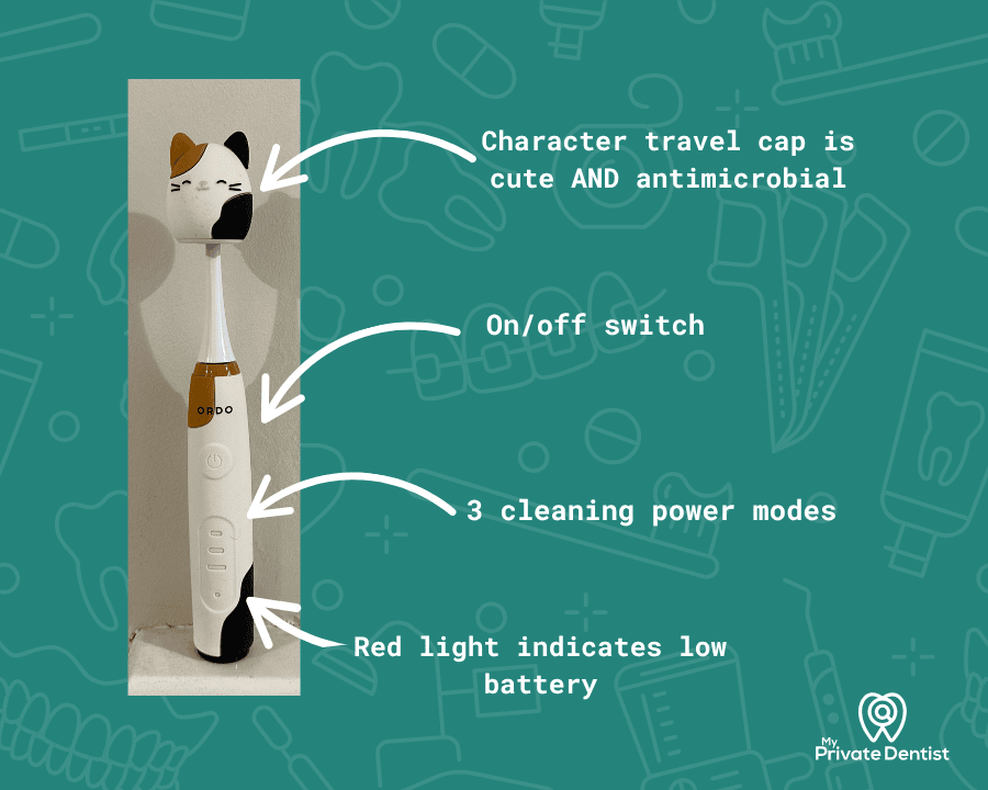 The Ordo operates quietly, which is great for kids who are sensitive to loud noises. Compared to battery-operated toothbrushes or some rotating brushes like the Oral-B Pro 3, itโs noticeably quieter, making for a much more comfortable and pleasant brushing experience.